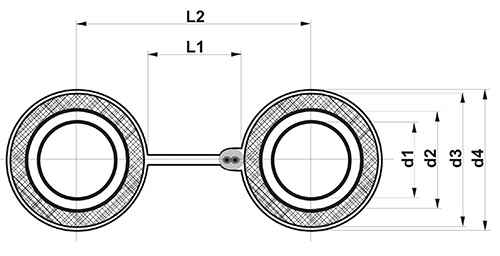Dvojité nerezové flexibilní potrubí pro solární systémy s izolací PES (polyester) a kabelem pro snímač teploty kolektorů.
